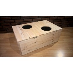 Buddelkiste "Lara XXL" Außenmaße: ca. 84x54x34cm Die Buddelkiste XXL ist ein komplett Set mit Holzrahmen und Kunststoffeinsatz. In den beiden Flügeldeckeln sind jeweils eine 20cm runde Öffnung, wodurch Ihre Kaninchen in die Buddelkiste gelangen. Auf Wunsch können auch zwei Handgriffe zum bequemen anheben der Kiste montiert werden.